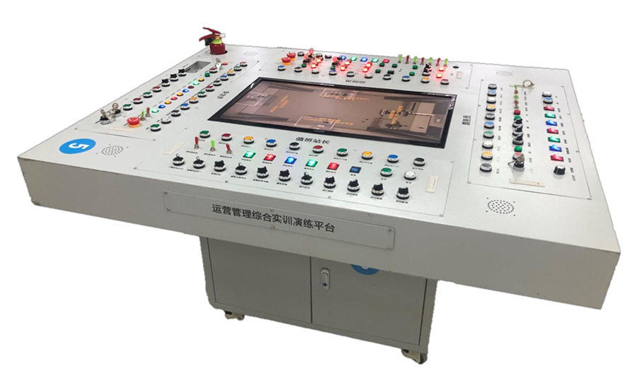 軌道交通運營管理模擬實訓演練平臺,主要由值班站長操作臺、綜控員操作臺、票務員操作臺、安全員操作臺及對應四個電子沙盤組成。當進行客運組織工作時,電子沙盤分別顯示車站內環境及發生的突發事件,運營管理每個崗位對應崗位操作臺進行各項操作來模擬實現應急預案處置,系統給予簡潔明了的表示和語音提示。當進行行車組織工作時,四個電子沙盤分別顯示同一條線路的不同站場圖,四個操作臺分別代表四個車站,每個崗位均變為綜控員(行車值班員),四個車站的綜控員根據隨機的運行圖及各類隨機突發實際或故障進行行車組織工作,完成城市軌道交通的正常運營。搭建軌道交通運營管理模擬實訓演練平臺,實現城市軌道交通運營管理中各崗位協調配合對突發事件的運行處置等客運組織工作及排列進路、接發列車、調車、故障處置等行車組織工作功能,讓學生通過實踐來掌握運營管理客運組織、行車組織相關技術及各崗位協作能力,更深入了解整個軌道交通運營系統。實訓平臺針對每一項功能都配備了詳細的實驗指導,并將先進的教學設計融入產品配套資料,幫助學生更好的掌握相關技術。
