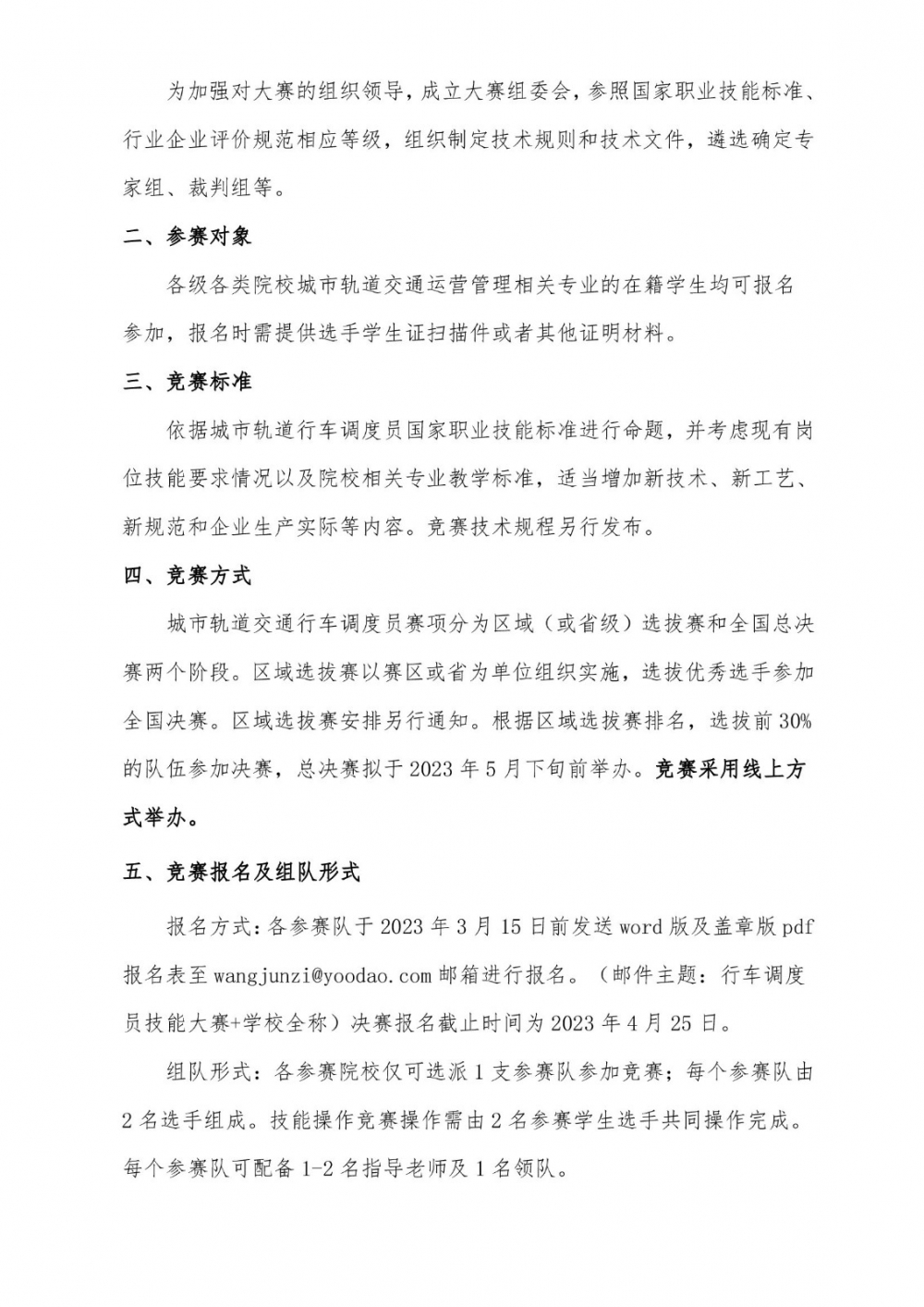 關于舉辦2022年“友道杯”全國交通運輸職業院校城市軌道交通行車調度員技能大賽的通知
